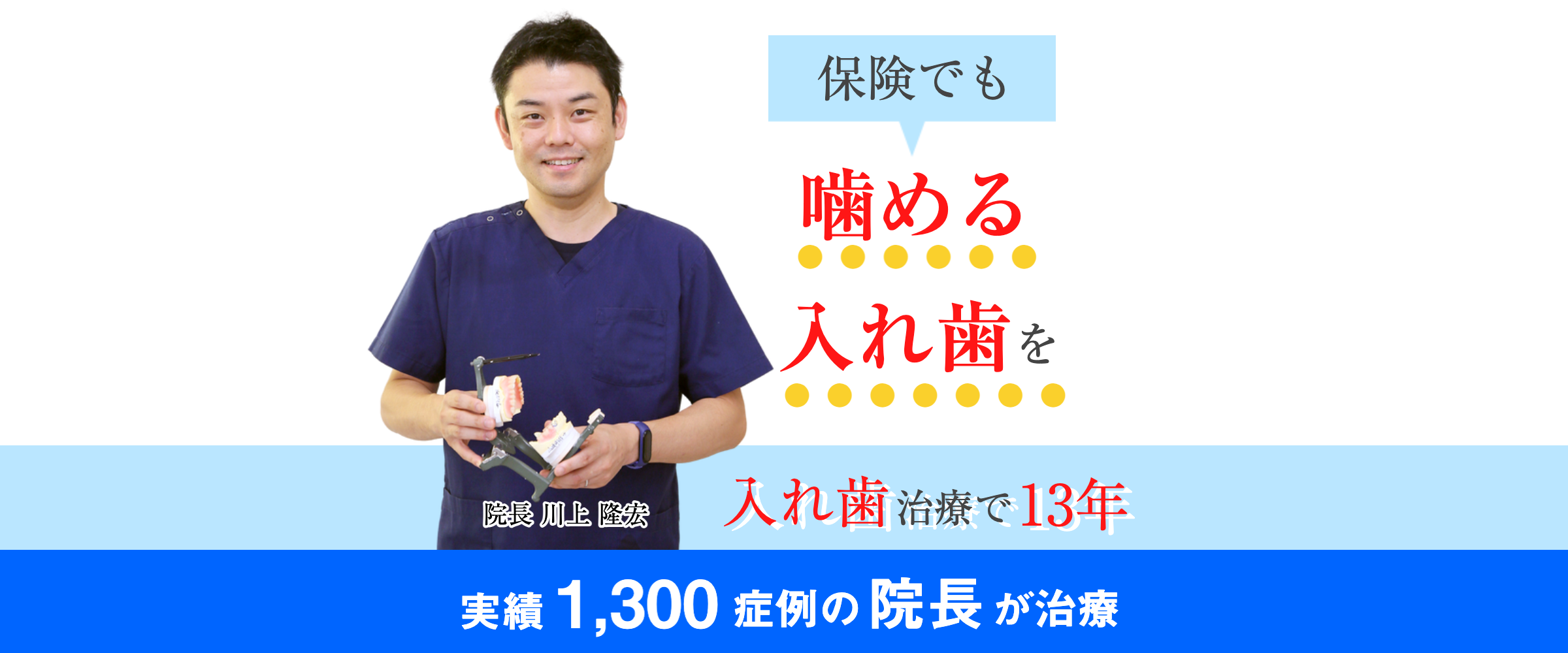 入れ歯治療で1,300症例(2012~2025年)の経験豊富な院長が、保険でも噛める入れ歯をご提供。